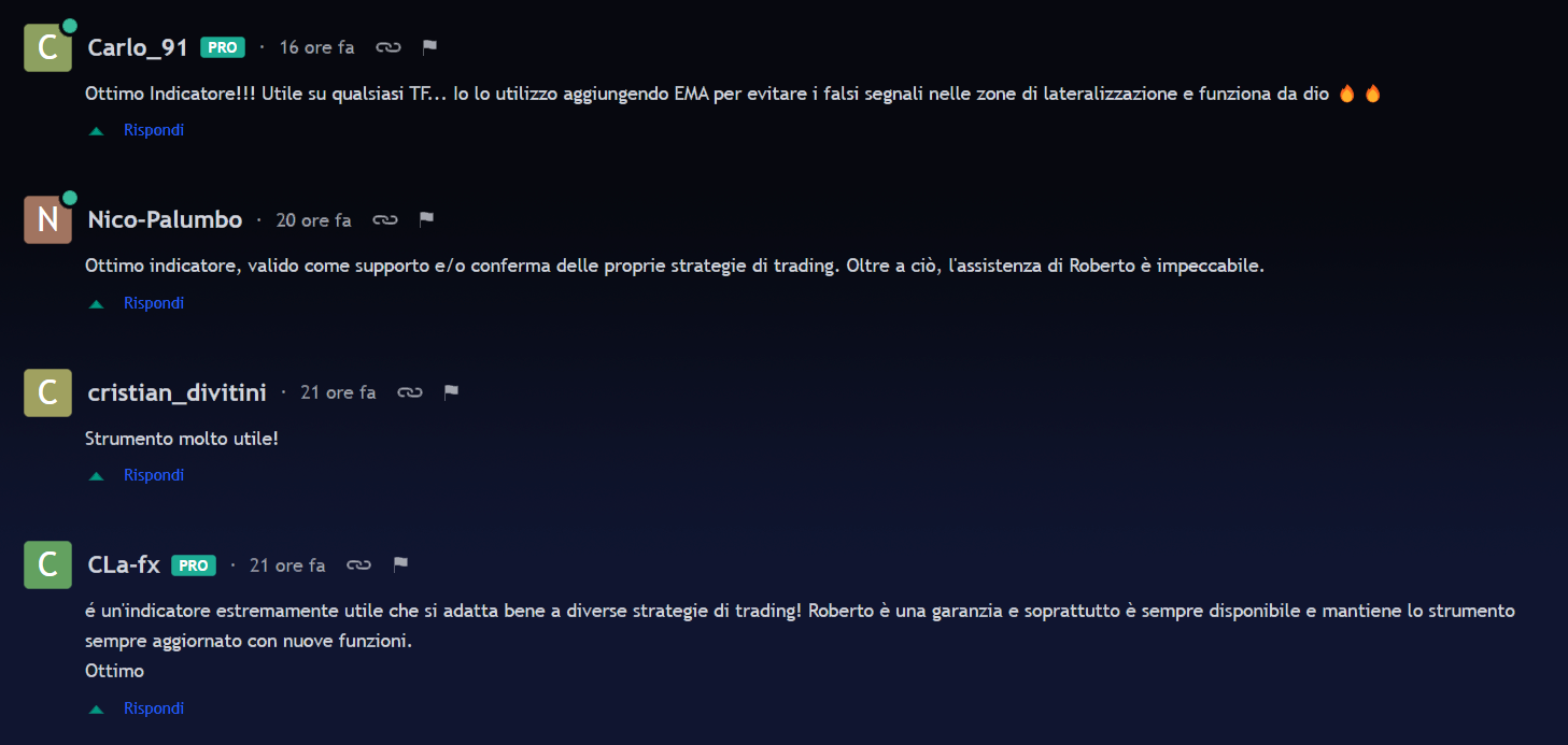 Con il pacchetto Pro invece avrai anche a disposizione un gruppo Telegram privato per supporto ( composto dal fondatore di Novatrend e tutti gli utenti Pro ) e la strategia Nova Divergent che unisce la potenza dell'indicatore a un ulteriore strategia discrezionale.