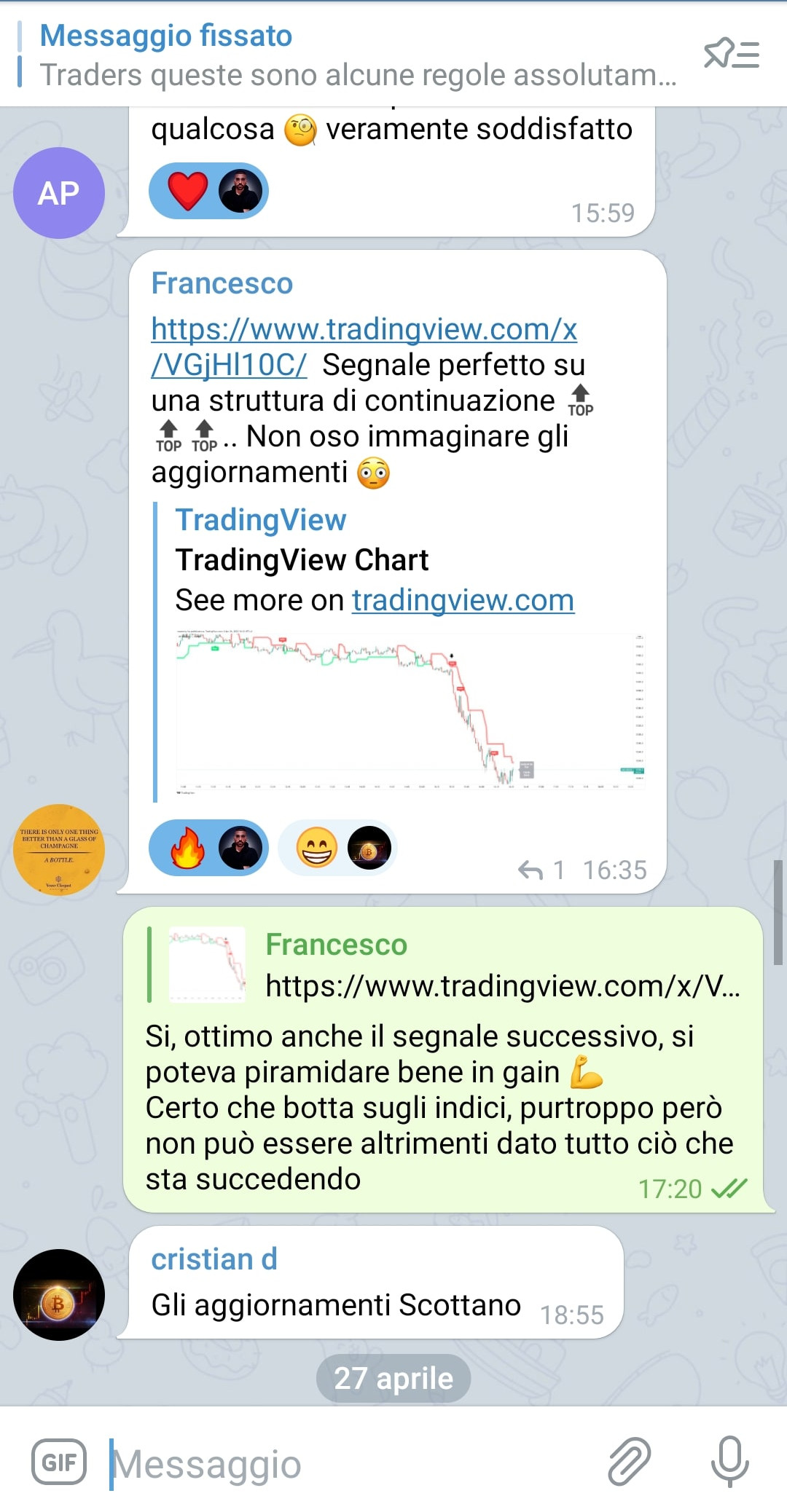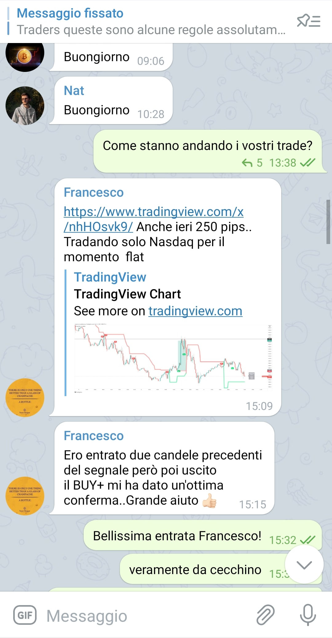 Nel gruppo hai la possibilità di confrontarti con altri Trader che utilizzano l'indicatore.
