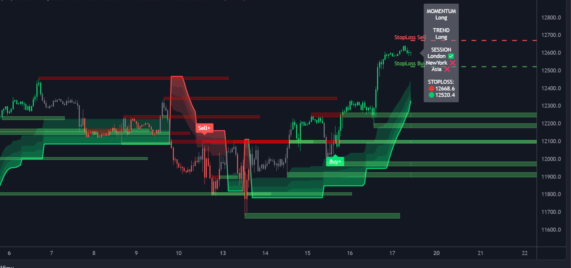 Novatrend ti permette di visualizzare in un colpo d'occhio le zone di prezzo più importanti di Supporto e Resistenza!